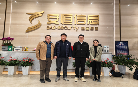 副院长付玉龙与刘樵老师赶赴杭州市安恒信息技术有限公司,与安恒信息总经理苗春雨围绕企业访问、岗位拓展工作的推进路径,以及实战教学活动的落地实施,进行了细致且深入的交流。