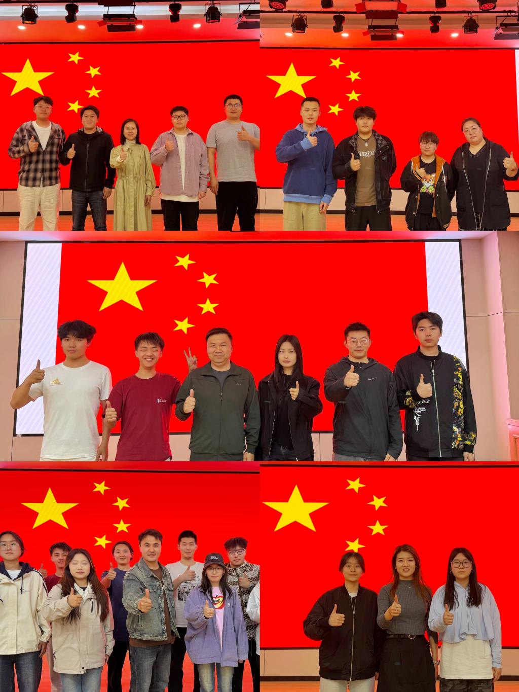 随后,全体师生共同上台参与《我和祖国合影》、《我给祖国说句话》活动,大家怀着崇敬之情,以质朴真挚的语言表达对祖国的美好祝福,每一句祝福都充分展现了师生深厚的爱国情怀与民族自豪。