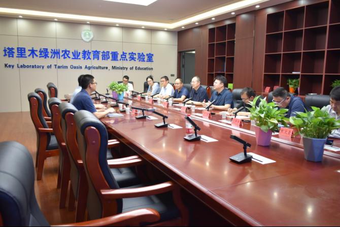 会后,孙雪剑一行实地考察了网络安全实验室和塔里木绿洲农业教育部重点实验室。