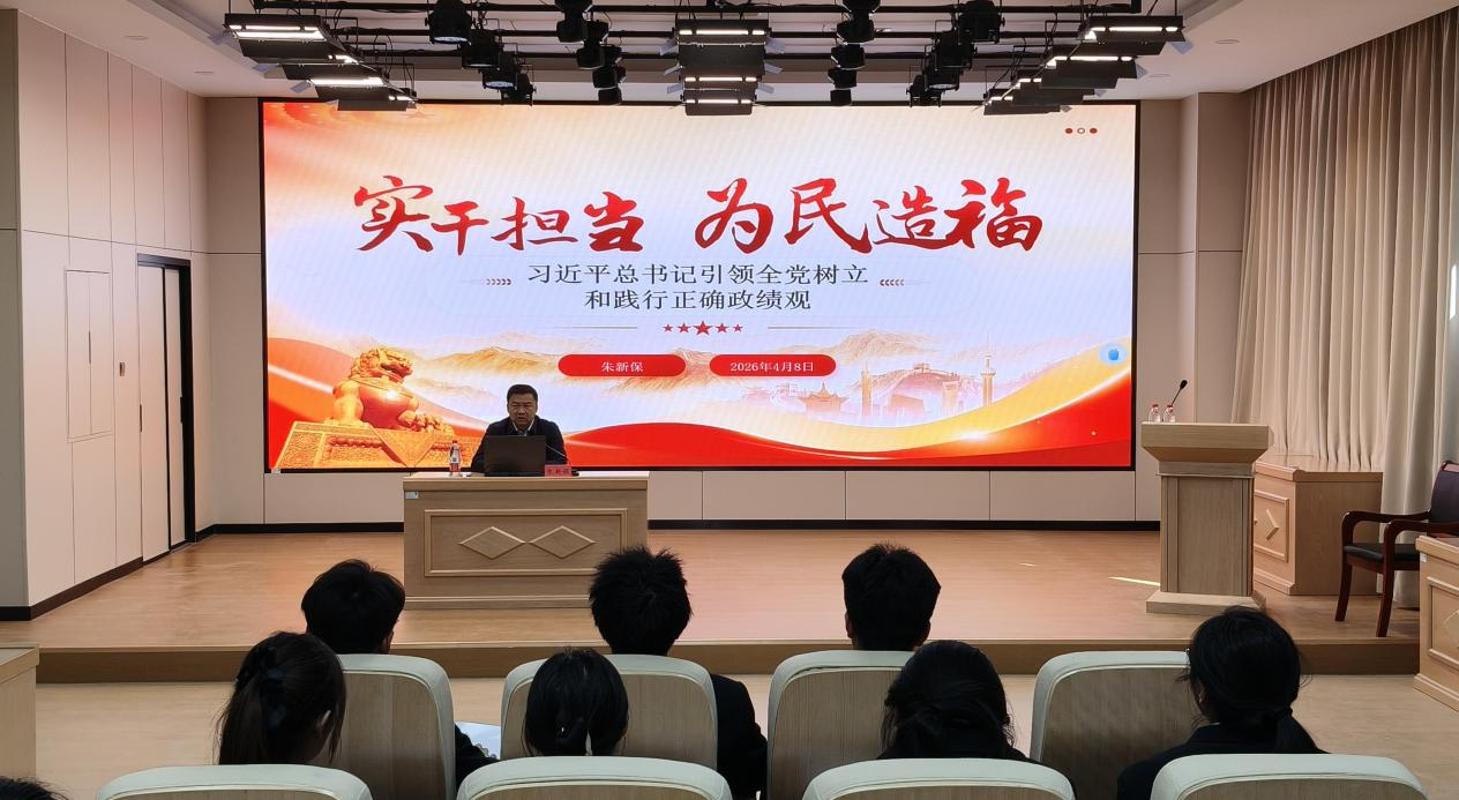 党委书记朱新保同志以《习近平总书记引领全党树立和践行正确政绩观》为题讲授专题党课,全体入党积极分子参加学习。