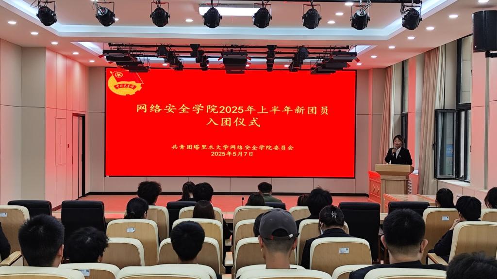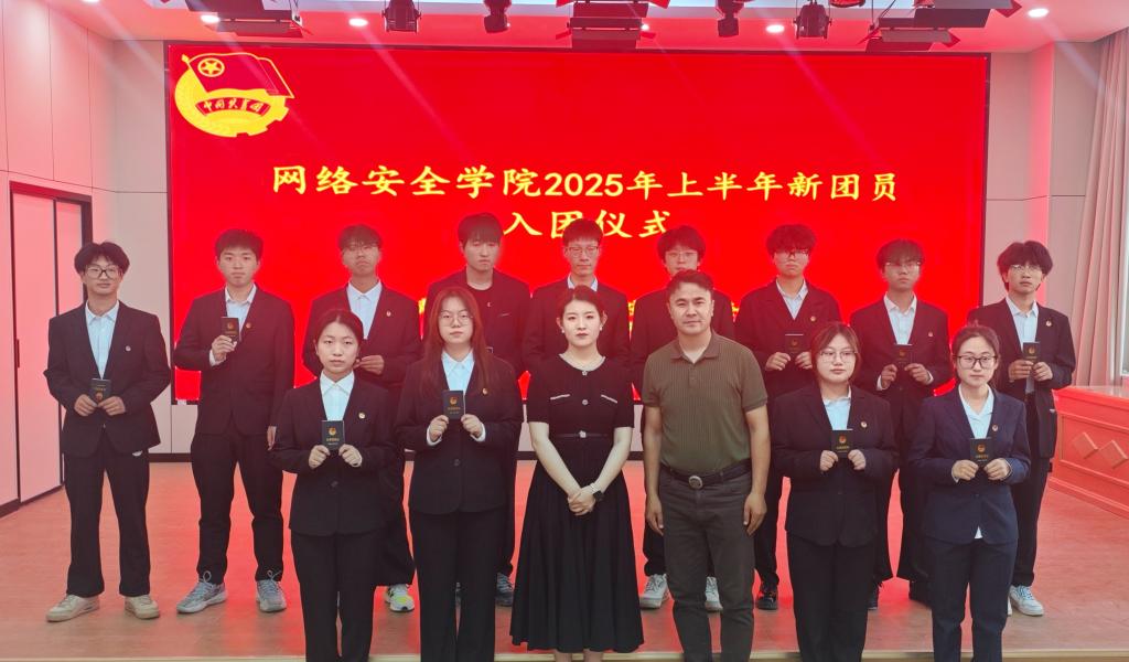 在保密楼A101报告厅举行2025年上半年新团员入团仪式。15名新发展团员、优秀团员代表参加。